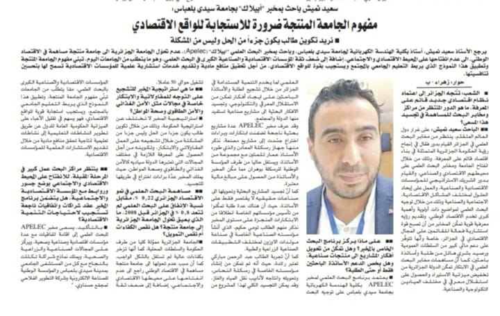 يرجع الأستاذ سعيد نميش، أستاذ بكلية الهندسة الكهربائية لجامعة سيدي بلعباس، وباحث بمخبر البحث العلمي “ابيلاك” (Apelec)، عدم تحوّل الجامعة الجزائرية الى جامعة منتجة مساهمة في الاقتصاد الوطني، الى عدم انفتاحها على المحيط الاقتصادي والاجتماعي، إضافة إلى ضعف ثقة المؤسسات الاقتصادية والصناعية الكبرى في البحث العلمي، وهو ما يتطلّب من الجامعات اليوم، تبني مفهوم الجامعة المنتجة وتطبيق هذا النموذج الذي يربط التعليم الجامعي بالمجتمع ويستجيب بقوة للواقع الاقتصادي، من أجل تحقيق منافع مادية وتقديم خدمات استشارية علمية للمؤسسات الاقتصادية تسمح لها بتحسين تنافسيتها.