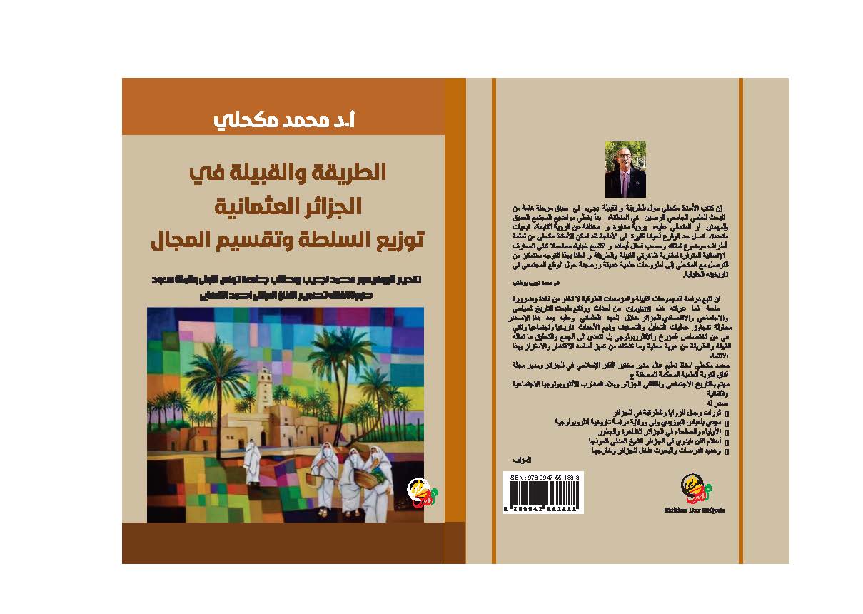 Vient de paraitre aux publications de Dar El Qods El Arabi :La Tribu et la Confrérie en Algérie Ottomane distribution du pouvoir et division du champ vision du champ Préface du Professeur Mohamed Najib Boutaleb Université de Tunis et Roi Saoud Arabie Saoudite Photo de Couverture Par l’artiste Peintre Irakien Ahmed Al Shahabi SILA Alger Pavillon Central M29